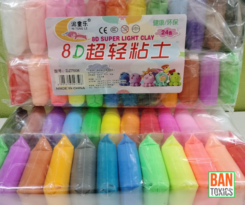BAN Toxics managed to purchase 8D Super Light Modeling Clay Toy, priced at P65 pesos per pack at M. de Santos Street, Divisoria, Manila. The clay toy failed the necessary labeling requirements and may not have undergone and passed health and safety standards in the country.