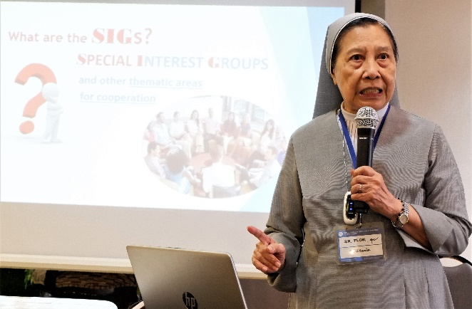 WCCI trustee Sr. Bernadette Racadio, SPC giving reassuring comments and feedback to Speaker Dr. Intia for the comprehensive, rich and inspiring presentation.The Special Interest Groups (SIGs)