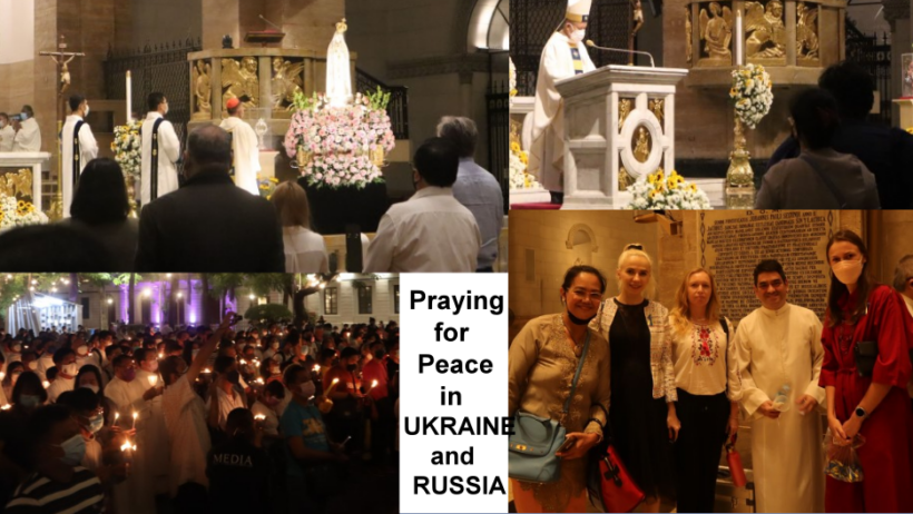 Ukrainians living in Manila, members of the Uniharmony Partners Manila, Fr. Richard James Babao, and WCCI Peace Educ. Coordinator Genevieve Balance Kupang join the Catholic Bishops, Clergy, Religious, and Lay Faithful in praying for peace in Ukraine and Russia.