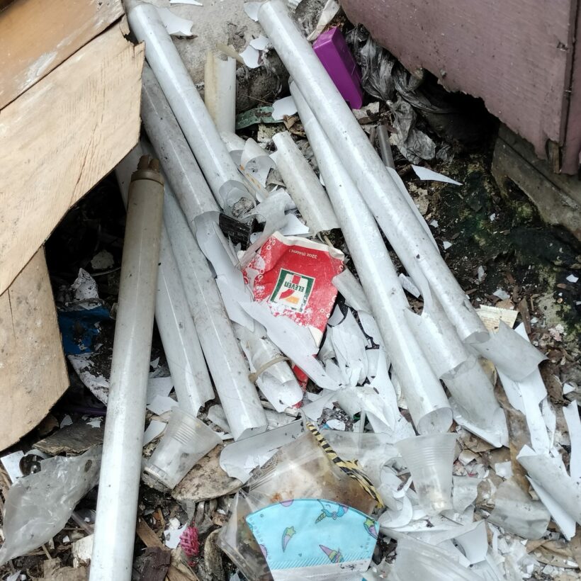 Busted fluorescent lamps left abandoned in V. Luna Ave. near corner Malakas St.