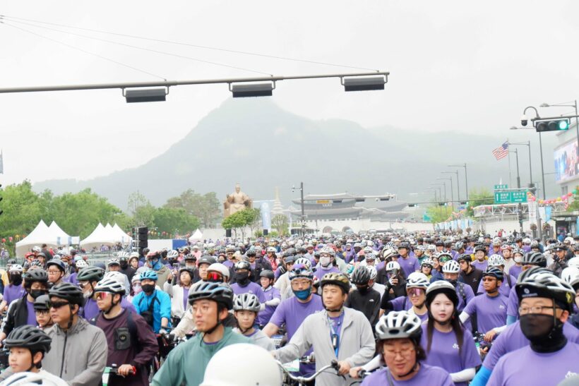 Sunday morning, May 21, 2023. About 10,000 cyclists, from all over the country, flocked to Seoul’s main public square, Gwanghwamun, in Central Seoul at 8 a.m. for the annual Seoul Bike Festiva. The event was hosted by JoongAng Ilbo, a daily newspaper company, and JTBC, a South Korean nationwide television network, and sponsored by the city government of Seoul. The Seoul metropolitan government has been very active in investing, providing, and promoting projects related to cycling.