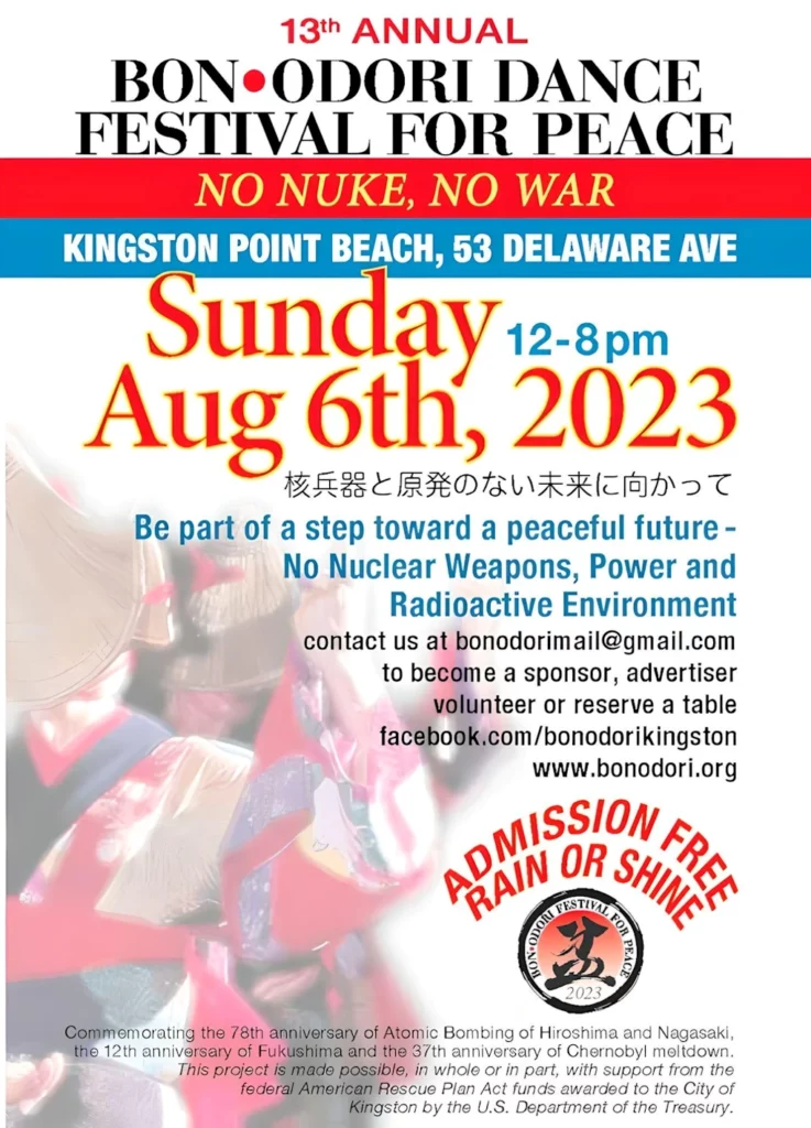 2023 – 13th Annual Bon Odori Dance Festival for Peace – Kingston Point Beach (Be Part of a Step Toward a Peaceful Future-No Nuclear Weapons) No Nukes, No War