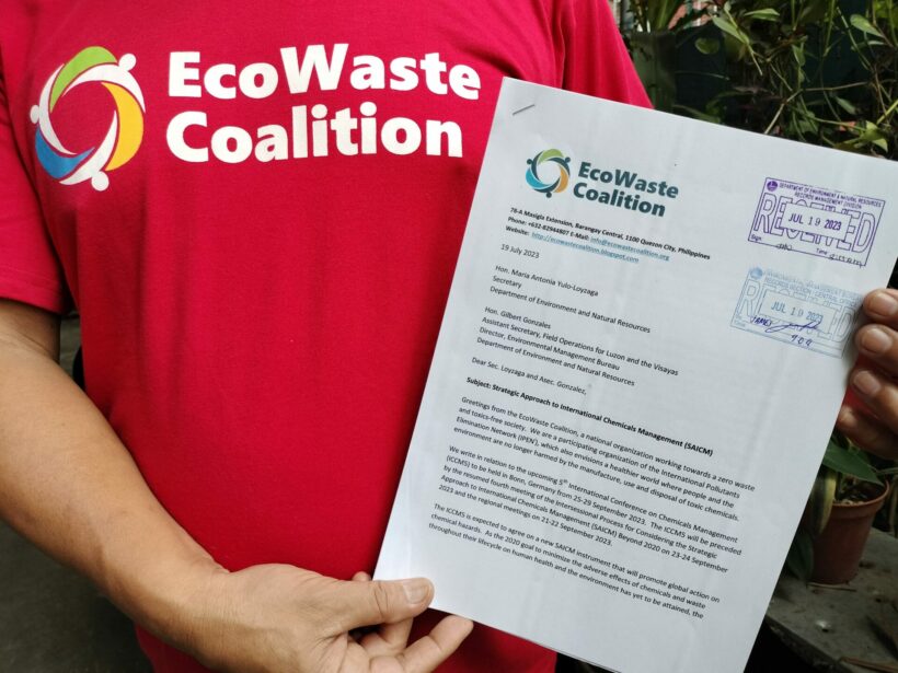 Through a letter submitted to the offices of the Department of Environment and Natural Resources (DENR), addressed to Secretary Maria Antonia Yulo-Loyzaga and Environmental Management Bureau (EMB) Director Gilbert Gonzales, the EcoWaste Coalition prodded the authorities to work for a more ambitious Strategic Approach to International Chemicals Management (SAICM).