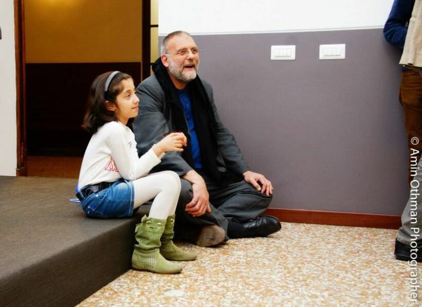 I started following peace projects after falling in love with two words “Peace and Nonviolence”. My territory of action is Bresciano, part of my origins. Here there is a military airport where it is assumed that there are 20 atomic warheads. Going to the first edition of the World March for Peace and Nonviolence (2/10/2009-2/1/2010), I discovered that inside the garden of the Museum of Santa Giulia in Brescia grows a Hibakujumoku (translator’s note: a Hibakujumoku is a tree that survived the atomic bombing of Hiroshima and Nagasaki) from Nagasaki, the descendant of a persimmon tree that survived the atomic attack of August 9, 1945. Thanks to the care of Dr. Masayuki Ebinuma (doctor of trees) , fruits were born whose seeds gave the first seedlings adopted by primary school children in Japan. Thanks to the artist Tatsuo Miyajima who told this story of the rebirth of life during the 1999 Venice Biennale, the Kaki Tree Project has spread throughout Italy, especially in the province of Brescia. In June 2012, taken by the enthusiasm of having managed to get a Nagasaki persimmon to the Garden of Peace and Hope in Kabul (Afghanistan), but above all by the dramatic news that was starting to arrive from Syria, I set off “on the road” to try to get a Tree of Peace there as well. This is how I came into contact with Father Paolo Dall’Oglio and the monastic community Deir Mar Musa (San Moses the Abyssinian). At that moment he had just been expelled from Syria after thirty years for openly siding against the Assad government.