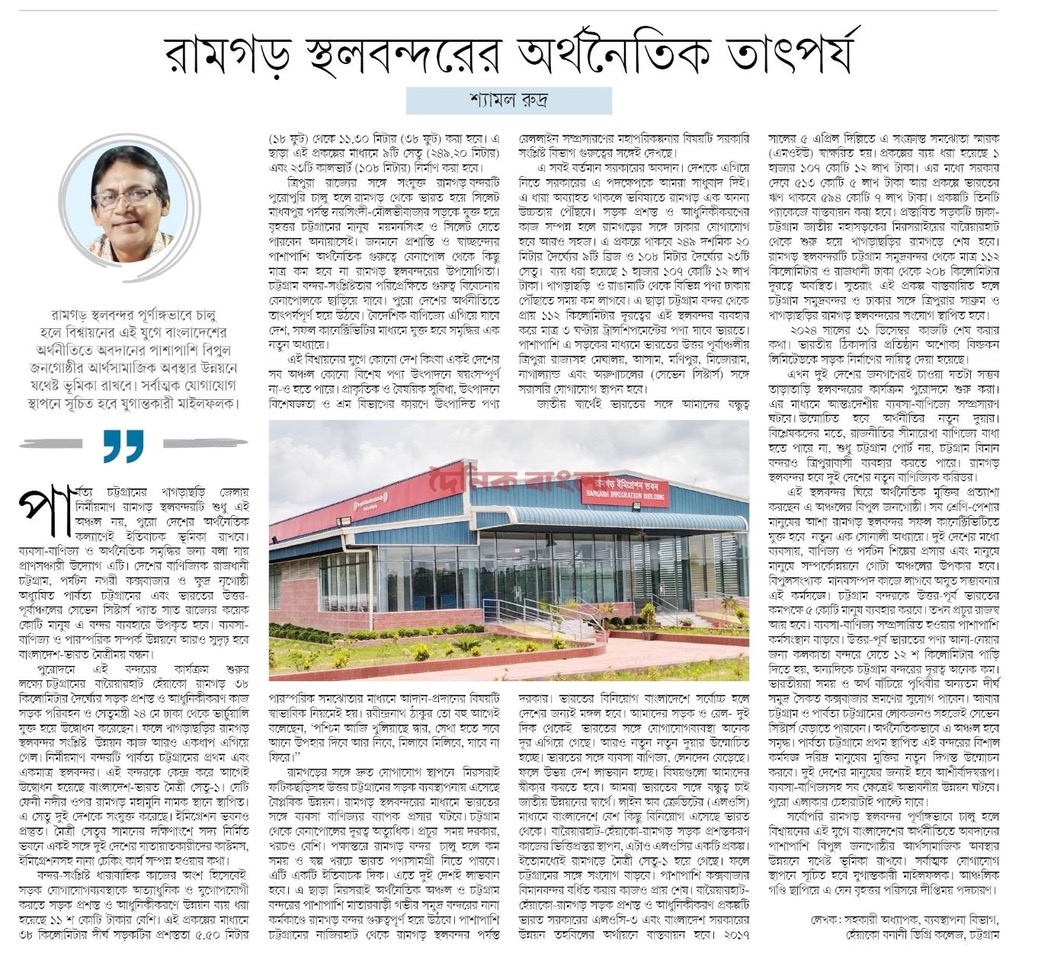 After all, if the Ramgarh land port is fully operational, it will contribute to the economy of Bangladesh in this era of globalization and will play a significant role in the development of the socio-economic condition of a large population. It will mark a milestone in establishing universal connectivity. It is like a brilliant walk across regional boundaries.
