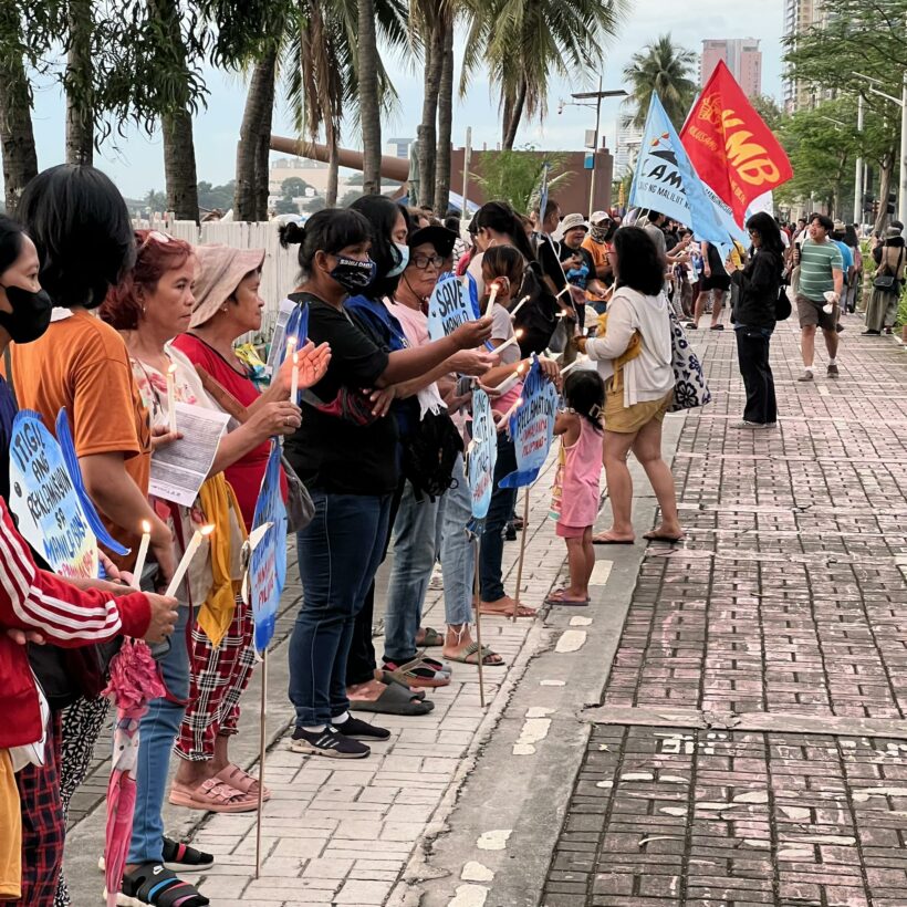 After the assembly and talks at the Rajah Sulayman Park, everyone trooped to the Baywalk carrying their banners, and posters, lighting candles up, in a long human chain against the Manila Bay sunset.