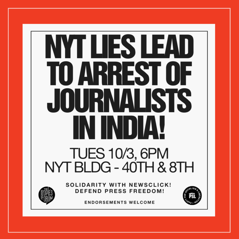 NewsClick was one of the targeted outlets, and following the publication of the article in the Times it became the target of intense attack by right wing politicians and media outlets. While posturing as a champion of freedom of the press, the New York Times in fact provokes crackdowns on free expression through their overriding loyalty to the Pentagon’s new Cold War.