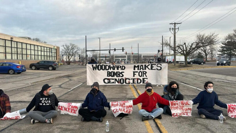 In Chicago, 33 people were arrested as they blocked entrances to the Woodward manufacturing plant, which makes military equipment that has been used by Israel in Palestine. In California, CodePink and other activists blocked an entrance to the Travis Air Force Base in Fairfield.