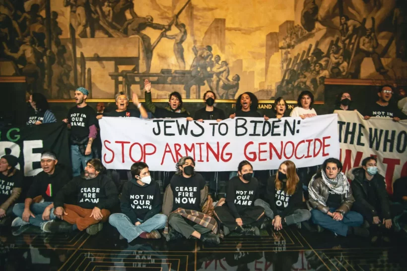 On Monday afternoon, dozens of Jewish protesters and their allies demonstrated at the headquarters for NBC television in New York City, demanding that President Joe Biden — who was appearing there later in the day — call for an Israeli ceasefire in Gaza. Around 50 participants in the protest were arrested before Biden’s interview on the NBC program.