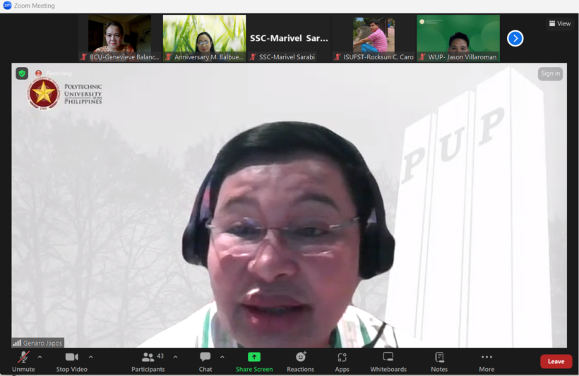 Dr. Anniversary Balbuena, from the University of Rizal System, effectively moderates the two-day webinar.