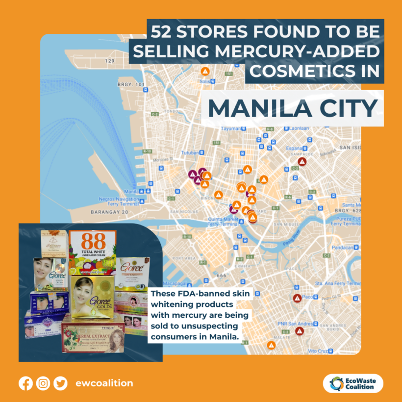 5 April 2024, Quezon City.  Ahead of World Health Day on April 7, the toxics watchdog group EcoWaste Coalition today provided the City Government of Manila with a map of wholesale and retail stores selling skin-lightening products laced with mercury to help the local authorities in enforcing the ban on such dangerous cosmetics.