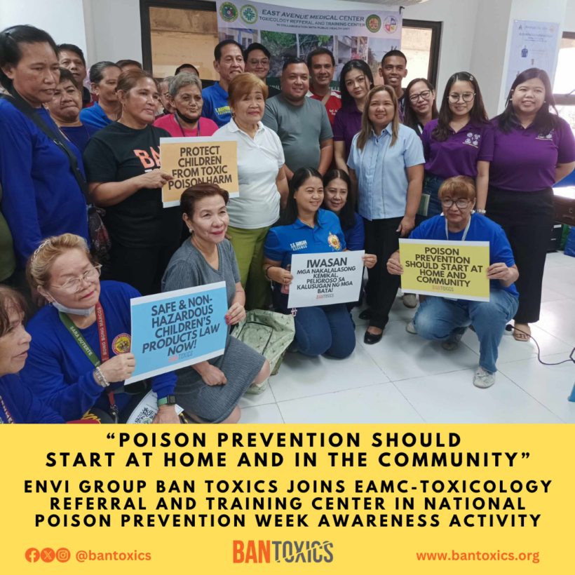 “Poison prevention should start at home and in the community.” This was the main message of environmental NGO BAN Toxics as they joined the East Avenue Medical Center (EAMC) Toxicology Referral and Training Center’s lecture forum in celebration of National Poison Prevention Week.