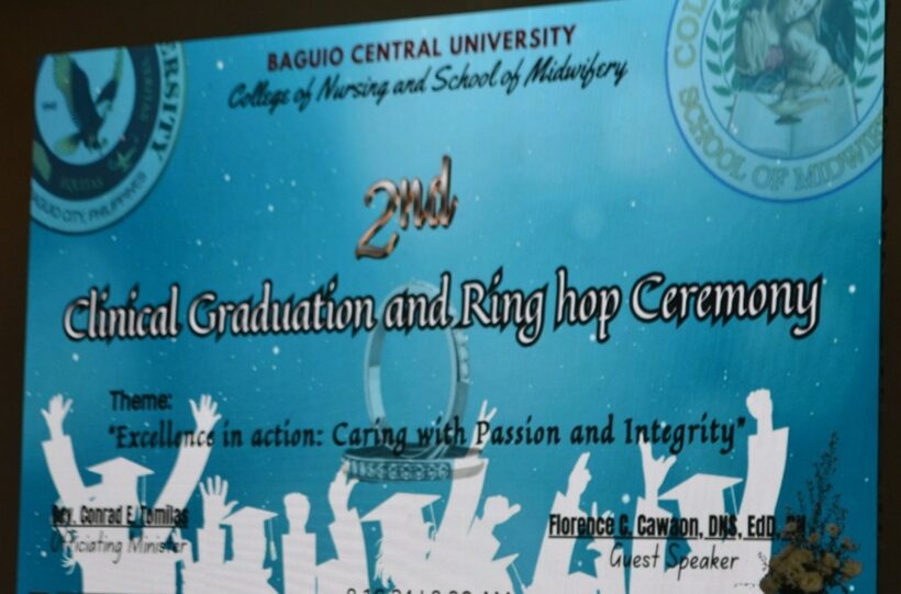 Last August 16, the College of Nursing and School of Midwifery conducted the 2nd Clinical Graduation and Ring hop Ceremony held at the Baguio Central University’s Function Hall with this year’s theme: “Excellence in Action: Caring with Passion and Integrity.”