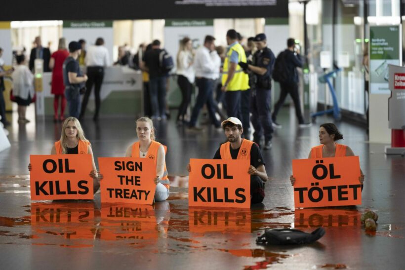 A new international coalition is disrupting airports to make one demand: the adoption of a treaty to end fossil fuels by 2030.