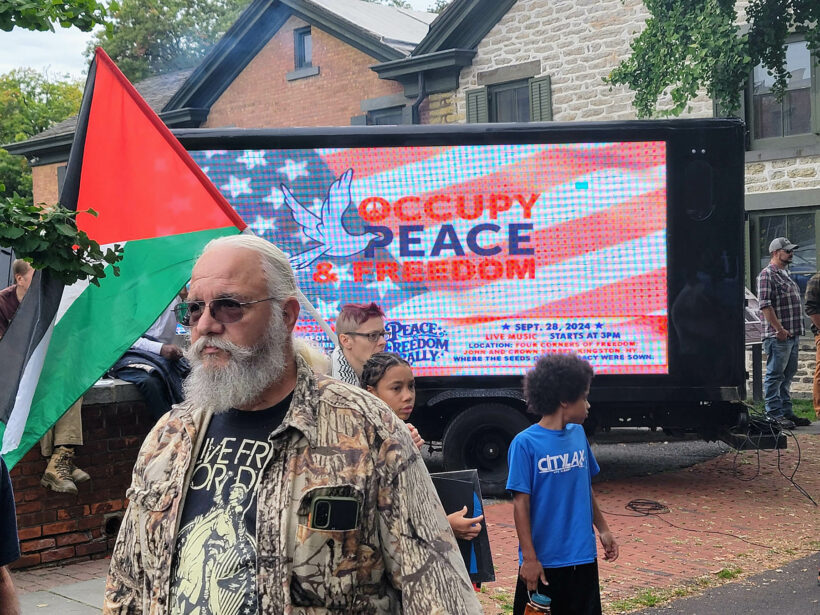 The rally occurred at the Four Corners of Freedom on Crown and John Streets in Kingston, N.Y.