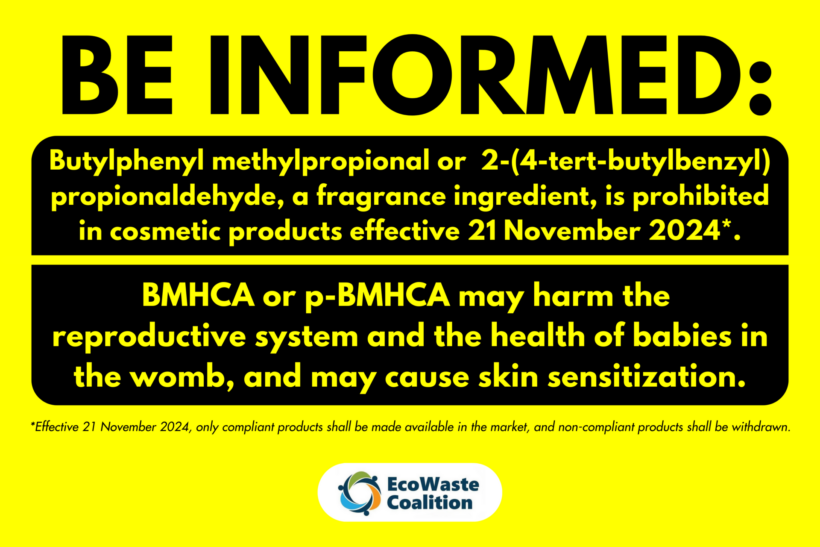 As the ban takes effect on November 21, 2024, the EcoWaste Coalition reminds consumers to read the ingredients’ list carefully and shun items with butylphenyl methylpropional, a toxic fragrance.