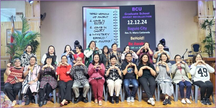 A heartfelt expression of gratitude for the blessings of 2024 and a time to reflect on the spirit of the Advent Season was held on December 12, 2024 at the Dr. Margarita Joven Fernandez Function Hall. Together, the Graduate School Family of Baguio Central University embraced the themes of hope and renewal as they thanked the Lord for His bountiful guidance and grace. They gathered for an enriching Advent recollection themed Behold, Be Awake.