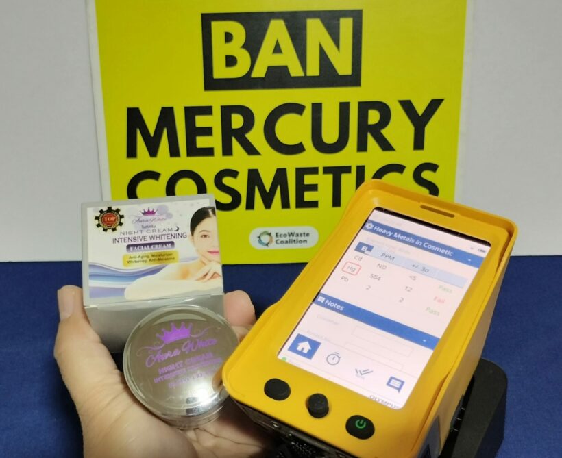 For its newest toxic discovery this January, which is celebrated as Zero Waste Month, the group announced the detection of 584 parts per million (ppm) of mercury in Aura White Night Cream Intensive Whitening Facial Cream purchased from an online seller for P265. A portable X-Ray Fluorescence (XRF) device was used to determine the presence of mercury in the sample. Under the ASEAN Cosmetic Directive, mercury as a heavy metal contaminant cannot exceed the maximum limit of one ppm.