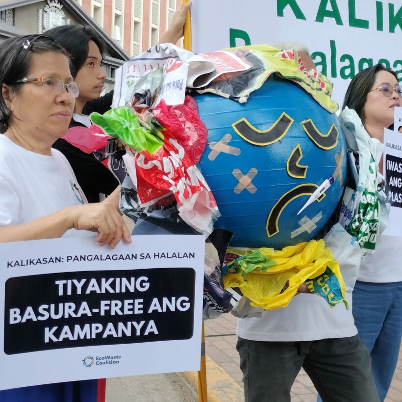 At the “Kalikasan: Pangalagaan sa Halalan” event held outside the poll body’s headquarters in Intramuros, Manila, the EcoWaste Coalition exhorted all candidates to curb the excessive generation of waste and to integrate environmental protection into their platforms and campaign strategies and activities. The event was held before the start on February 11 of the official campaign period for senatorial and party-list candidates and before the commencement of the campaign for local posts on March 28.