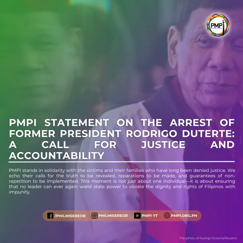 PMPI stands in solidarity with the victims and their families who have long been denied justice. We echo their calls for the truth to be revealed, reparations to be made, and guarantees of non-repetition to be implemented. This moment is not just about one individual—it is about ensuring that no leader can ever again wield state power to violate the dignity and rights of Filipinos with impunity.