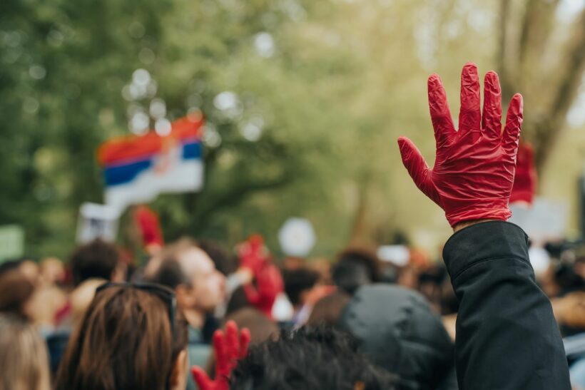 Speaking of values, Arsenijević warns that as protests stalled, far-right groups exploited the pause, infiltrating rallies under the banner of unity. “Now we see all sorts of hyper-Orthodox symbols, Chetnik insignia, imperialist territorial nostalgia, slogans about reclaiming Kosovo, Russian flags and symbols – while at the same time, there’s a strong yet unspoken censorship of other symbols.”