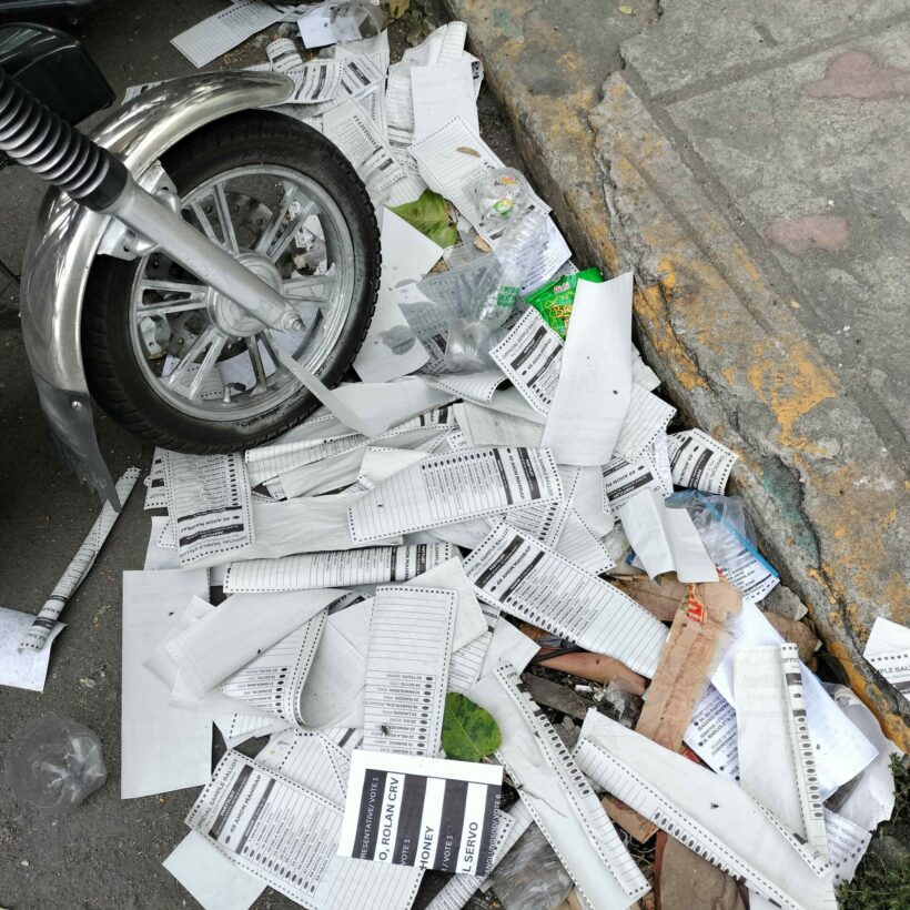Outside Rosauro Almario Elementary School, for instance, sample ballots were found scattered on the ground for personnel of Manila’s Department of Public Services to pick up. People literally walked on discarded sample ballots before government personnel uncomplainingly swept the area clean with their broomsticks.