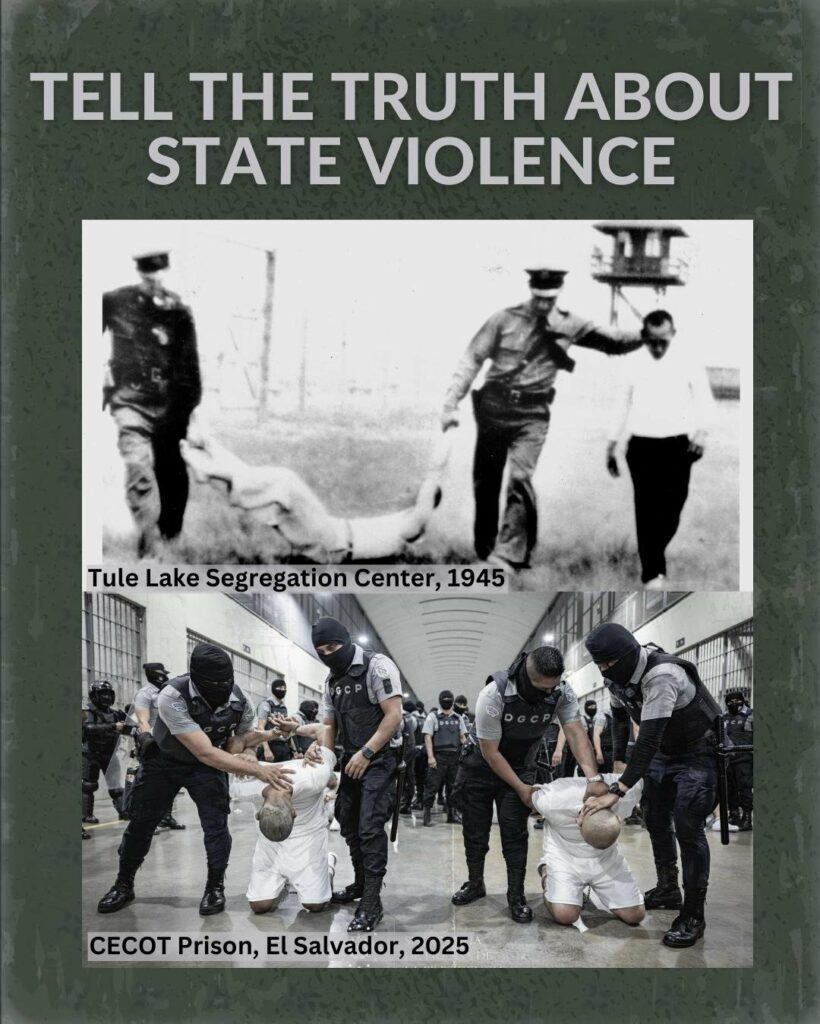 Photos of my father and other Japanese Americans brutalized in the Tule Lake Segregation Center in 1945 chillingly resonate with the treatment of Venezuelans by the U.S. government today. Invoking the Alien Enemies Act of 1798 parallels our own history of state violence. To heal from community trauma, we must tell the truth and not obscure violence and repression.