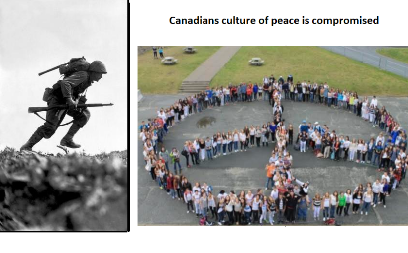 Today Canadian culture of peace is compromised by the government’s Carney support for militarization and confrontation.