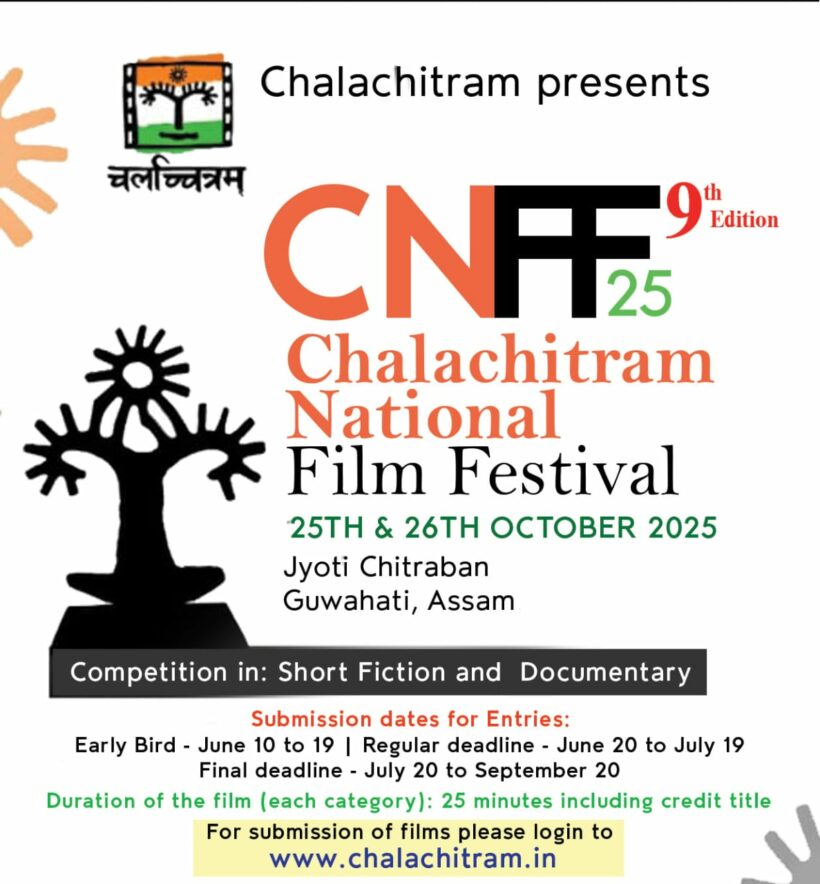 Guwahati: As the 9th Chalachitram National Film Festival 2025 (CNFF-25) is set for 25 & 26 October next at Jyoti Chitraban film studio premises in Kahilipara, nearly 100 film works have reached the organizing committee this 15 August from various parts of northeast Bharat and also outside the region. The two-day annual festival, initiated for fostering nationalism through cinemas and paying homage to the country’s thousands of years old civilization, culture and heritage, is open for short features and documentaries (produced between 1 November 2024 and 15 September 2025) with a time frame of a maximum of 25 minutes.