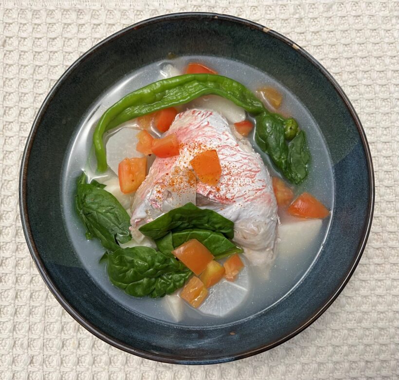 I mastered cooking Sinigang because it is easy to customize. I can decide which ingredients to use based on availability. Taste and levels of umami can be adjusted. Even the name, “Sinigang,” is the noun for the action word, “stewing,” a category that lends itself to variations. Home cooks of the northern half of the Philippines serve this clear but hearty soup for lunch and dinner, but not as a starter. It is consumed with rice alongside other mains.
