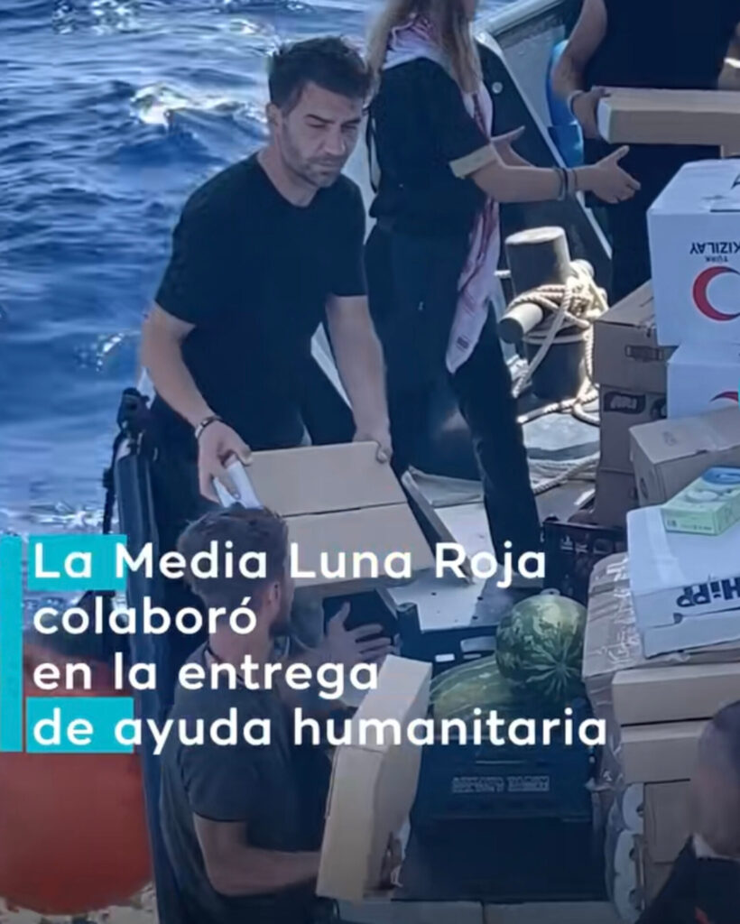 The defining episode of the day was the exemplary intervention of the Turkish Red Crescent (Kizilay) and the Turkish Navy, who assisted one of the damaged boats by providing supplies, technical equipment, and coordinating the evacuation of four crew members. The images, shared in real time through official channels and social media, show the transfer of boxes and the solidarity work at sea, with Turkish volunteers standing alongside international activists in a scene that symbolizes resilience and global cooperation in the face of the humanitarian crisis.