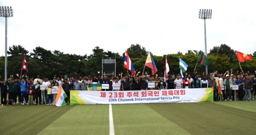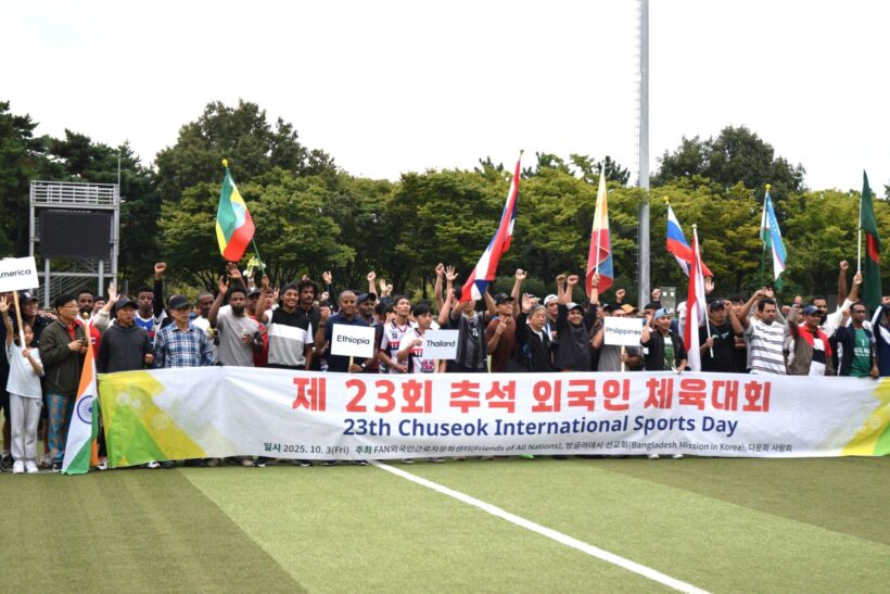 Annually hosted in Inchon city on the first day of Chuseok, also known as Korean Thanksgiving Day, the 23rd Chuseok International Sports Day was held on October 3, 2025, at the Namdong Neighborhood Park Stadium and Yeonsu Sports Park. The event gathered more than 500 migrant players, organizers, and supporters in a vibrant celebration of unity through sports. Participants who represented a wide range of countries, including Korea, Bangladesh, Ethiopia, Thailand, Vietnam, the Philippines, Indonesia, China, Pakistan, Sri Lanka, Nepal, India, Myanmar, Cambodia, Mongolia, and Uganda, joined hands with Korean society in the spirit of friendship, co-existence, and mutual respect.