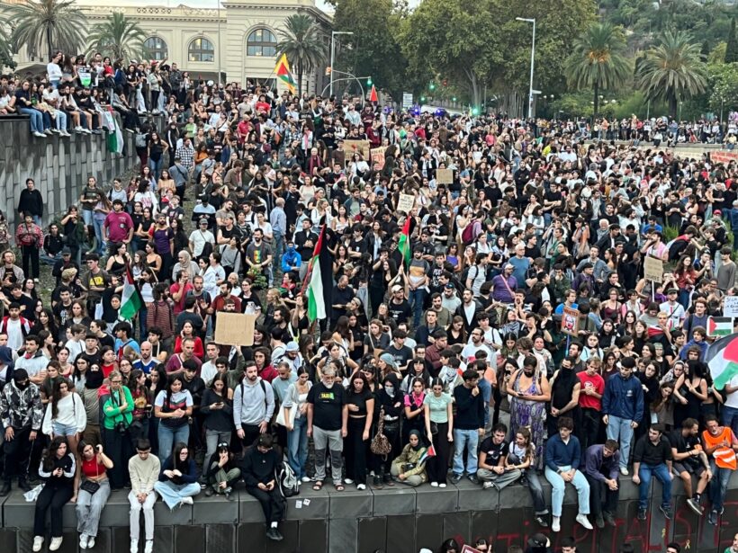 In Barcelona, the day was particularly intense. In the morning, over 6,000 students, called together by the Student Union, marched to the City Hall square and the headquarters of the Generalitat. The demonstration was marked by banners, Palestinian flags, and chants against the blockade and occupation, showing solidarity with the affected civilian population and demanding immediate access for humanitarian aid to Gaza. At other points in the city, such as University Square, other rallies took place where slogans were chanted against the Israeli occupation and in defense of Palestine.