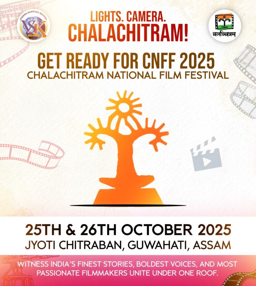 Cinema that’s not for glossy entertainment and making money, but for fostering nationalism, this is how Chalachitram National Film Festival takes shape in Assam. A unique visual feast is coming again for the film buffs on 25 and 26 October 2025 at Jyoti Chitraban premises in Guwahati. The 9th edition of CNFF is scheduled to screen nearly 40 documentary and short feature films, produced between 1 November 2024 and 15 September 2025 with the duration of a maximum of 25 minutes, in both competition and only screening categories for the serious film-makers, cine workers, appreciators and general audience of northeast India. Organized by Chalachitram (www.chalachitram.in), a film society under the mentorship of Bharatiya Chitra Sadhna and Vishwa Samvad Kendra-Assam, the festival also paves the way for paying homage to thousands of years of Indian civilization, culture and heritage.
