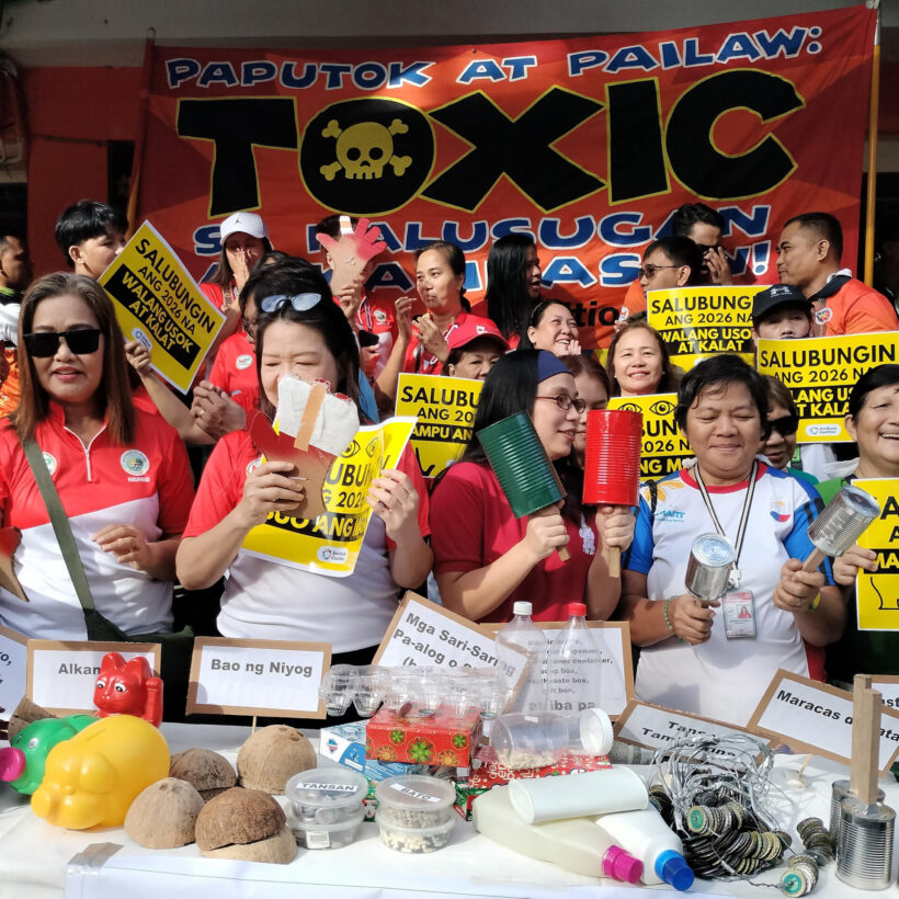 IWAS PAPUTOXIC:  As the New Year revelry approaches, the environmental watchdog group EcoWaste Coalition ramps up its advocacy for people-, pet- and planet-friendly celebrations without firecrackers and fireworks at Barangay 179 in Caloocan City.  As a replacement for firecrackers and fireworks, which are known to cause injuries, fires, toxic smoke, and garbage, the group enjoins the public to make do with accident- and emission-free alternative noisemakers.