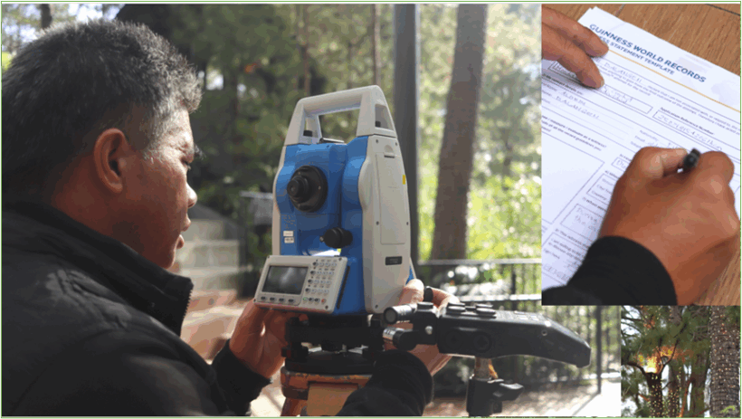 Civil engineers Aldrin Balangin and Thadeus Jericho “TJ” Garcia measure the area, diameter, and radius of the mandala—using electronic surveying equipment and Computer-Aided Design (CAD) software for accuracy.
