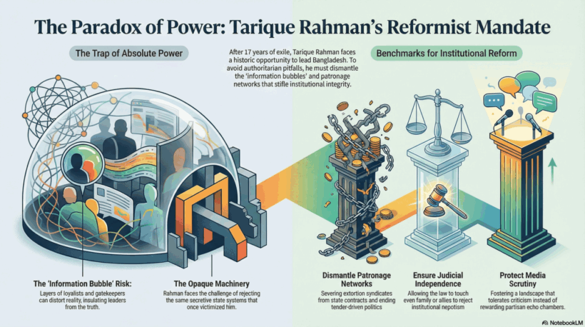 Following a landslide electoral victory, Tarique Rahman is set to ascend to the pinnacle of power in Bangladesh. However, like many historic leaders before him, he faces a striking paradox: an absolute mandate often carries the seeds of an absolute fall.