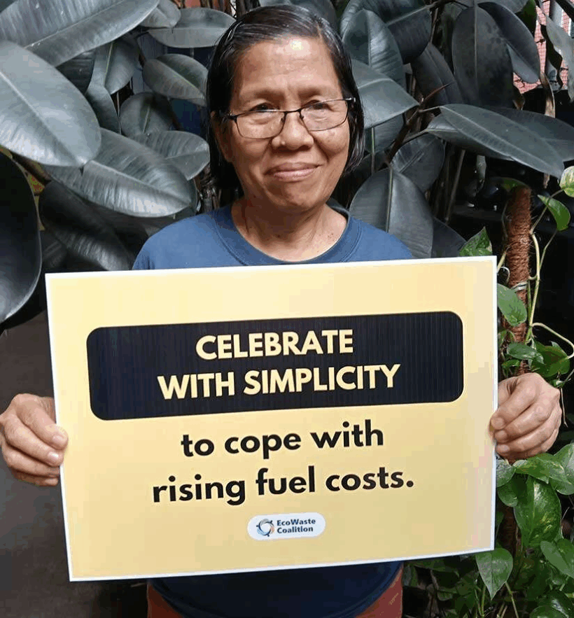 “Amid the spiraling fuel prices, we implore our church and local government leaders, including our barangay officials, to work with their constituents in planning for simpler celebrations to ensure that scarce resources are not wasted and are spent to meet the essential needs of vulnerable families,” said Ochie Tolentino, Zero Waste Campaigner, EcoWaste Coalition.
