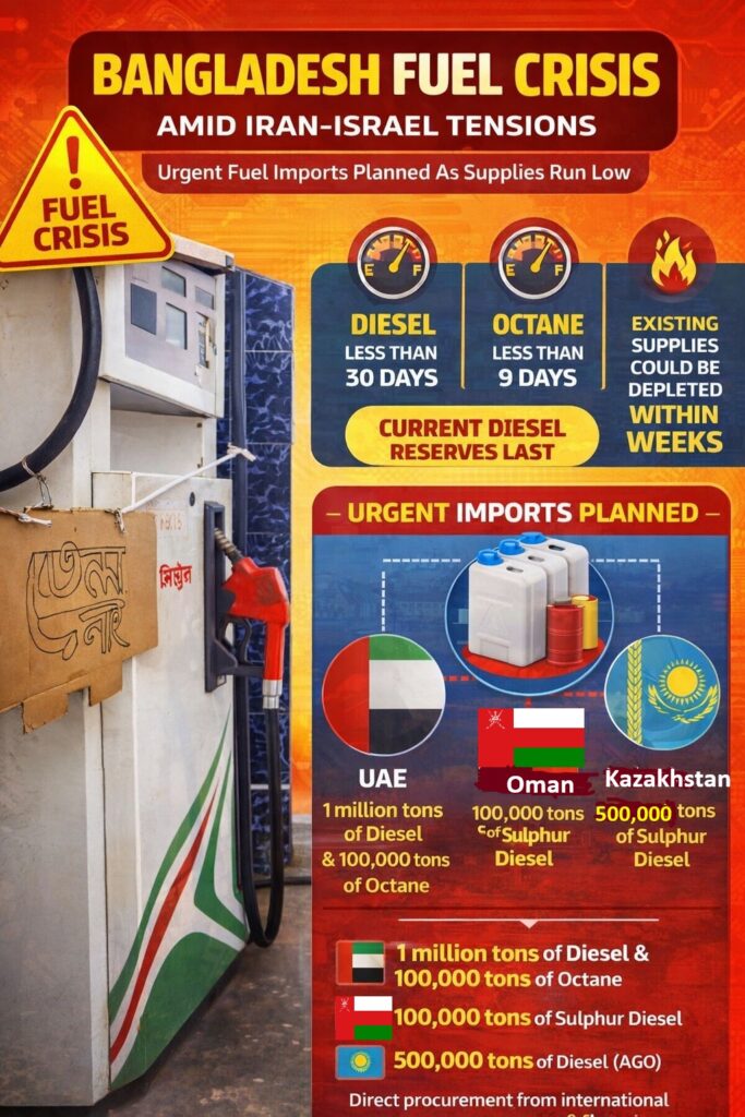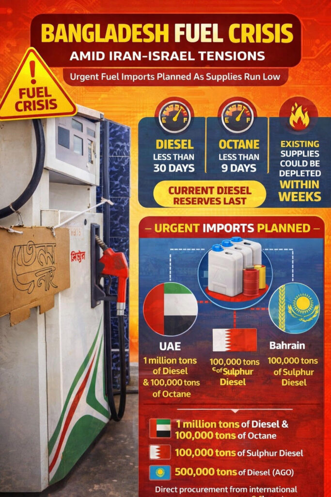 Bangladesh has moved to secure emergency fuel supplies as escalating geopolitical tensions involving Iran, the United States, and Israel threaten global energy stability, raising concerns over potential domestic shortages.