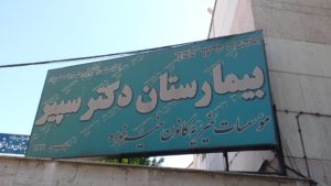 Sign above the entrance to the Jewish hospital in Tehran reading “You shall love your neighbor as yourself.” (Photo Yakov Rabkin)