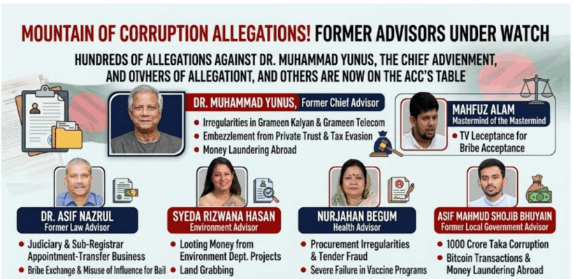 Just seven days after the change of power in Bangladesh, an unprecedented situation has emerged. Hundreds of allegations of corruption and irregularities against almost all members of the recently departed interim government, including former Chief Advisor Dr. Muhammad Yunus, are now on the desk of the Anti-Corruption Commission (ACC).