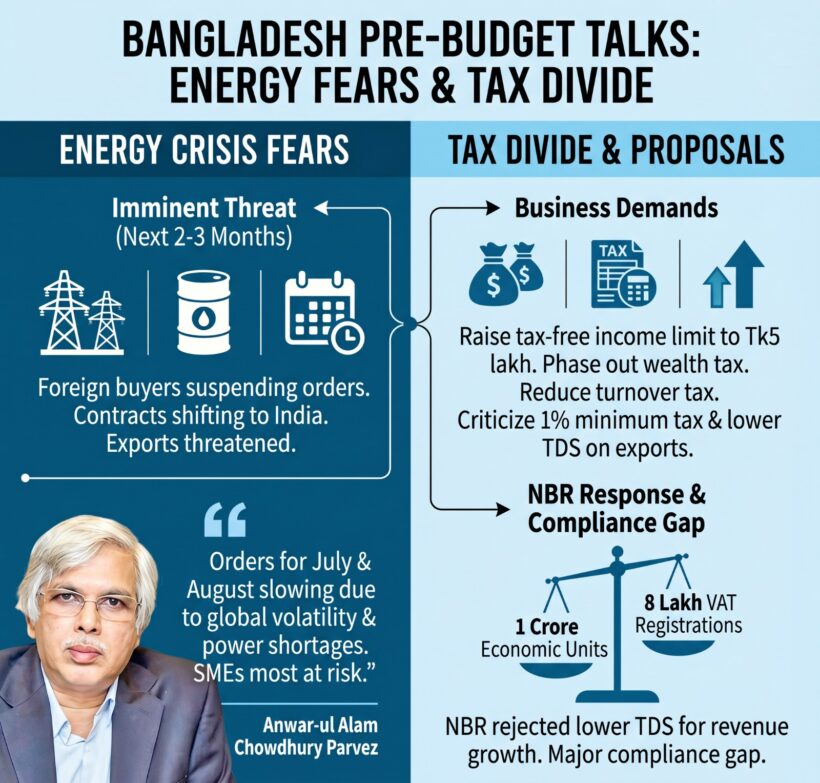 A concerning picture has emerged from the discussions surrounding Bangladesh’s upcoming national budget. Small-scale industries and ordinary working-class people fear being crushed between the looming clouds of an impending energy crisis and an ever-increasing burden of taxation.