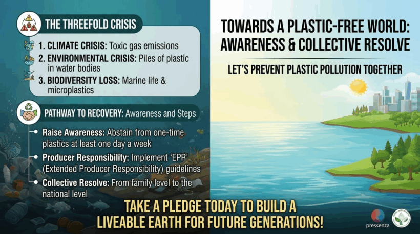 Global plastic pollution has escalated into a terrifying crisis. The uncontrolled use of plastic is striking at three critical levels: nature, climate, and biodiversity. Experts warn that plastic is a substance that ‘has a birth but no death.’ To protect the Earth from this invisible poison, radical changes in lifestyle and the adoption of plastic alternatives have become the need of the hour.