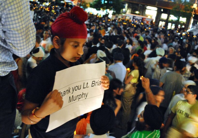 The ceremony was coordinated by The Interfaith Center of New York and United Sikhs. Some signs thanked Oak Creek police officer Brian Murphy, a native New Yorker who survived after receiving nine bullets during the shooting that killed six people.