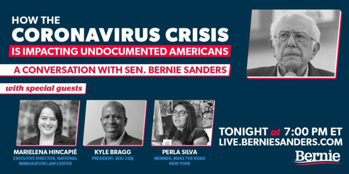 Sen. Bernie Sanders will be joined by national immigrant rights advocates Monday evening for a livestream discussion about the effects of the coronavirus on the undocumented in the United States.