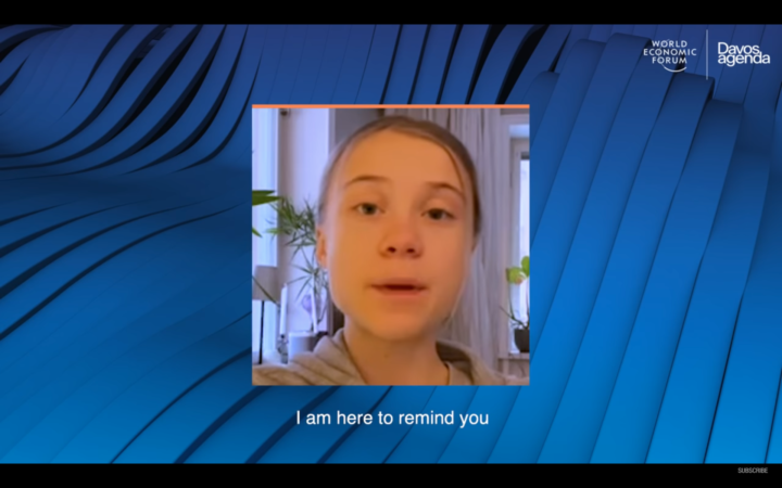 The 18-year-old Fridays for Future founder delivered a speech at the Davos Agenda, the first virtual annual meeting of the World Economic Forum (WEF). The event typically draws political and business leaders to Davos, Switzerland, but shifted to an online format this year due to the ongoing coronavirus pandemic.