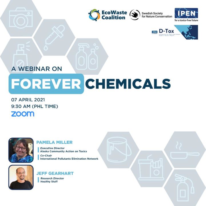 Organized by the EcoWaste Coalition and the International Pollutants Elimination Network (IPEN), the “D-Tox Webinar on Forever Chemicals” turned the spotlight on the hazards of PFAS (the acronym for per- and polyfluoroalkyl substances), a group of over 5,000 chemicals that has earned the moniker “forever chemicals” because they don’t break down easily and can stay in the environment indefinitely, build up in human bodies over time and bring about adverse health outcomes.