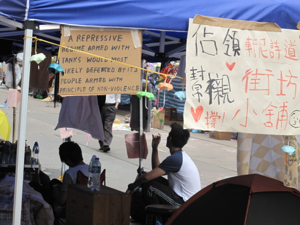 However, speaking with young people holding fast at Causeway Bay today, one of the Occupy sites, what the government is offering is worthless. The anger is still directed at the Chief Executive who is seen responsible for submitting the original report to Beijing which did not reflect the feelings and thoughts of Hong Kong people in full and in truth. One lad simply stated, seventeen years and nothing.