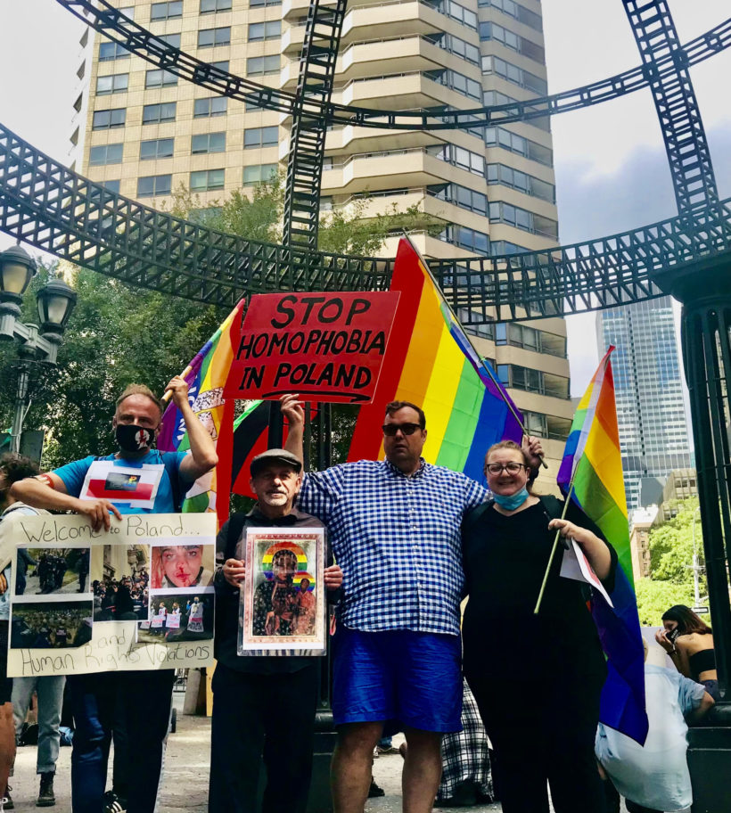 In a message of support to the activists, renowned Polish Documentary filmmaker Piotr Piwowarczyk wrote “I would like to express my solidarity and gratefulness to the participants in today’s rally at the UN. As a proud Polish gay man I thank each of you for bringing international attention to the discriminatory policies of the current Polish government and President Duda. Your presence today on behalf of human rights is proof that the world is watching the anti-LGBT policies of Polish authorities and condemns them with full force as undemocratic and against human values. Long live democratic Poland and its allies!”