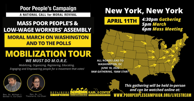 We Assemble and March on June 18, 2022 because any nation that ignores nearly half of its citizens is in a moral, economic and political crisis. There were 140 million people who were poor or one emergency away from economic ruin before the pandemic. Since March 2020, while hundreds of thousands of people have died, millions are on the edge of hunger and eviction, and still without health care or living wages, billionaire wealth has grown by over $2 trillion.
